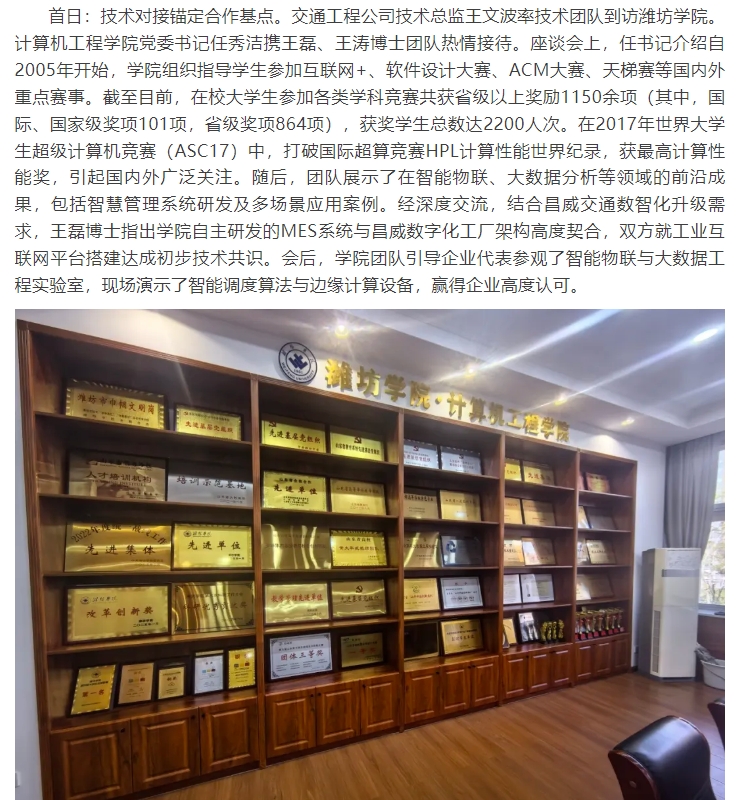 校企攜手共筑智慧交通新生態(tài)——交通工程公司與濰坊學(xué)院計(jì)算機(jī)工程學(xué)院開啟產(chǎn)學(xué)研深度合作