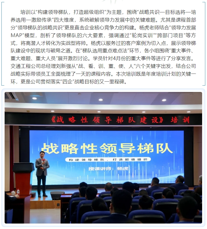 交通工程公司舉辦戰(zhàn)略性領(lǐng)導(dǎo)梯隊(duì)建設(shè)專題培訓(xùn)