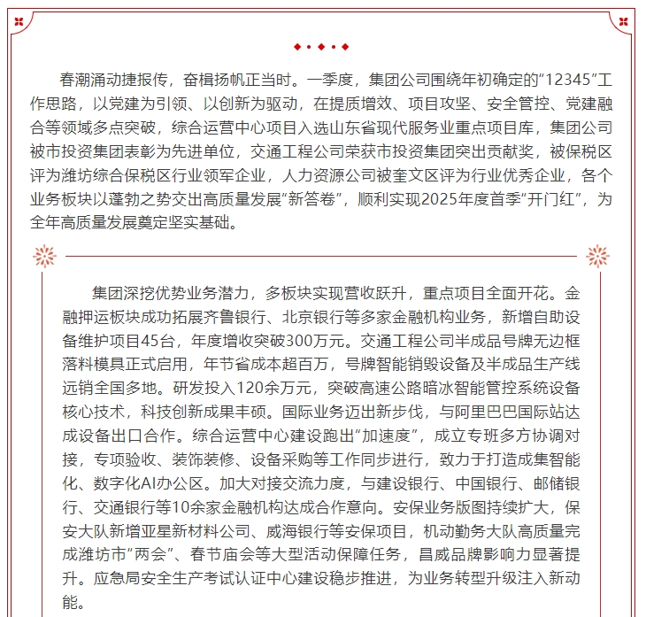 集團(tuán)公司順利實(shí)現(xiàn)一季度“開門紅” 蓄勢(shì)賦能高質(zhì)量發(fā)展新征程